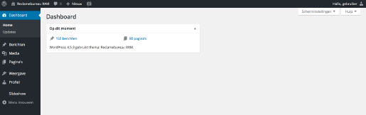 Als je bent ingelogd, kom je op het Dashboard terecht, de overzichtspagina van het beheersysteem van de website.