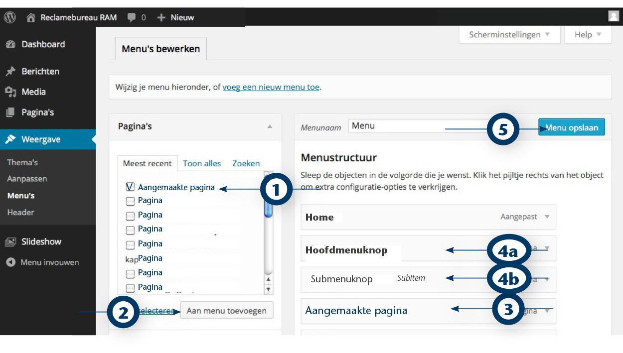 5. Klik tot slot op de knop Menu opslaan