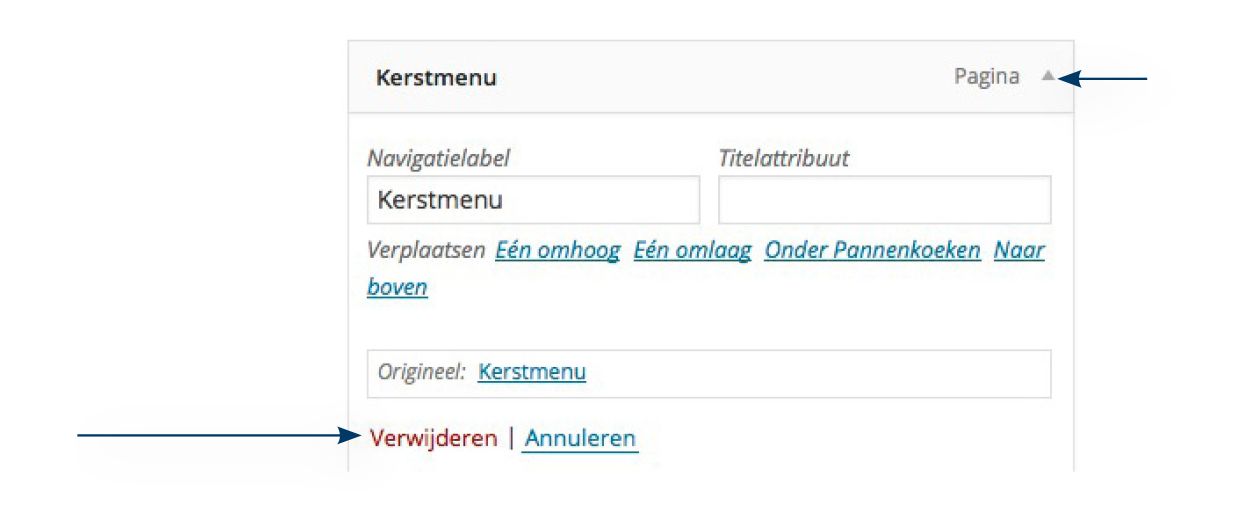 Pagina verwijderen uit menu