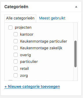 Vink de benodigde categorie aan of klik op ‘+nieuwe categorie toevoegen‘ en geef de nieuwe categorie een naam.