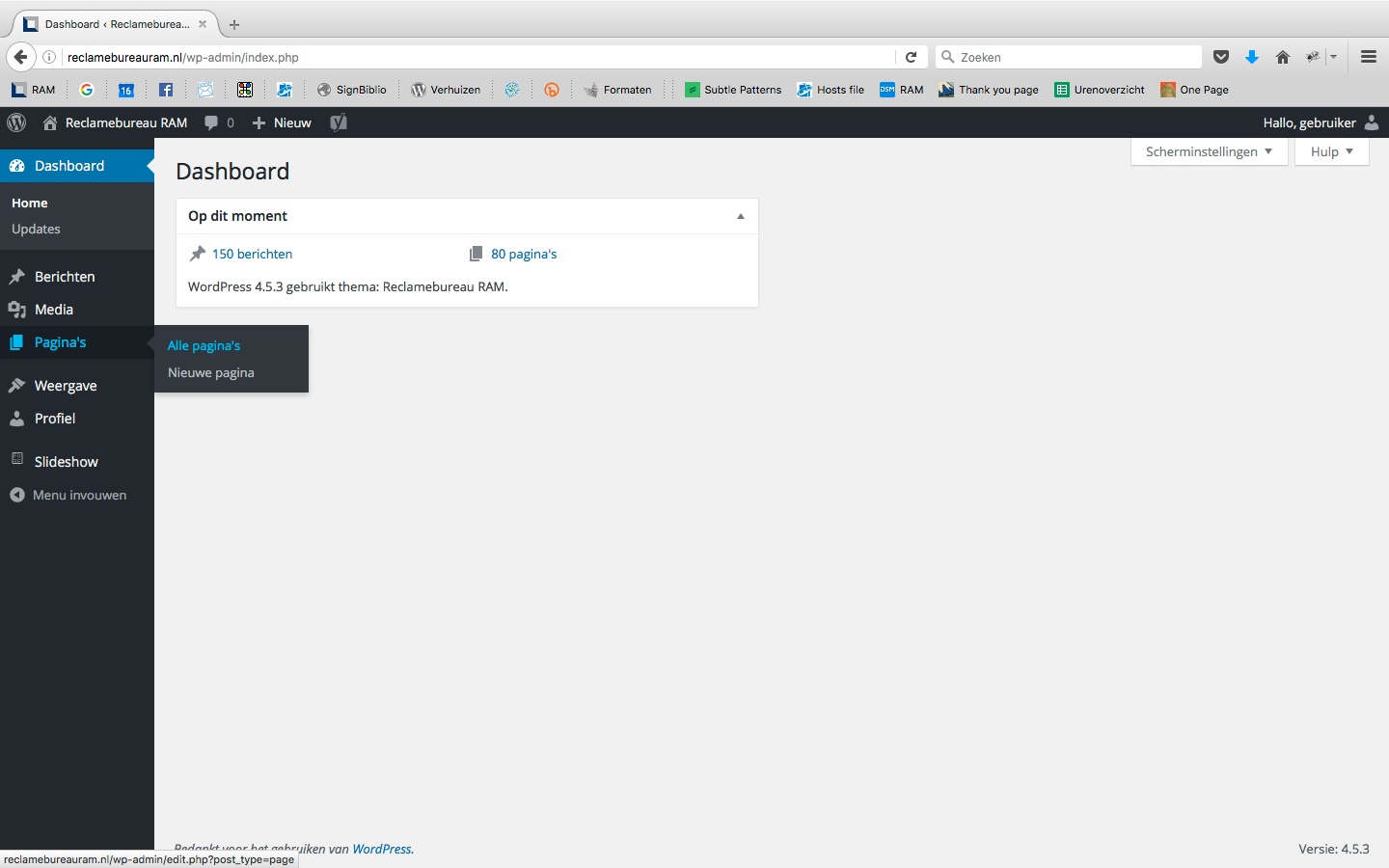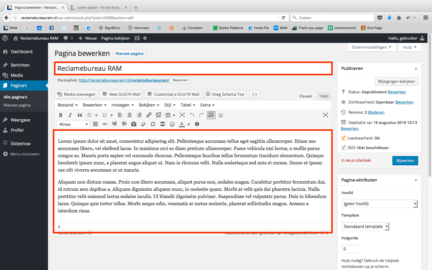 Via Pagina’s >> Alle Pagina’s krijg je een overzicht van alle bestaande pagina’s.