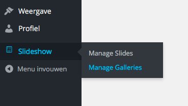 Ga naar Slideshow. Klik vervolgens op Manage Galleries. Je maakt namelijk eerst een gallerie aan waar je later slides aan zult toevoegen.